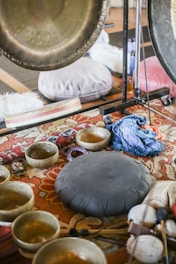 Creating immersive soundscapes using a combination of traditional and modern instruments to promote relaxation and meditation.